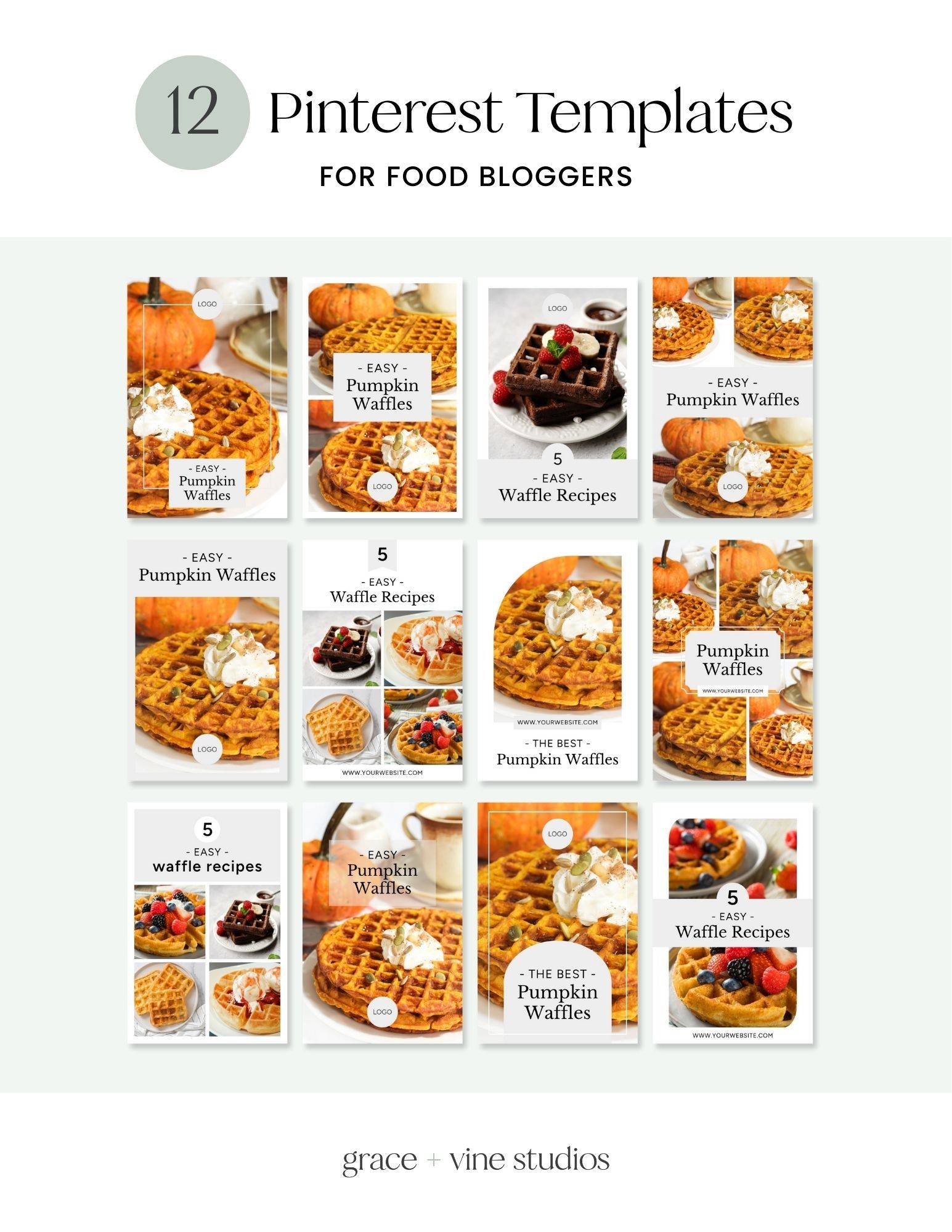 - 12 unique 1000px X 1500px Pinterest pin designs optimized for food content